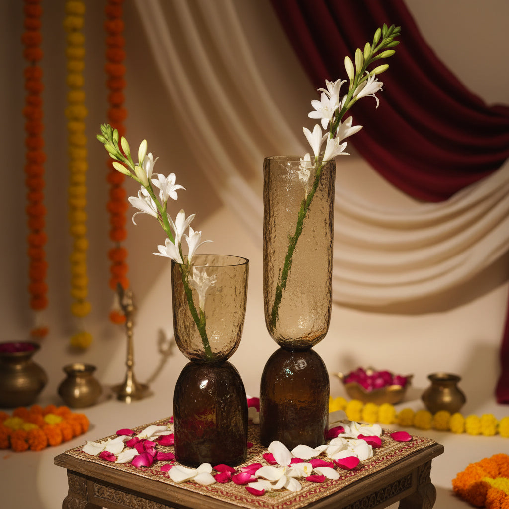 Elevate your living spaces with Muun Home's Axel Glass Decor – the perfect blend of handcrafted design and organic beauty. These unique decor pieces from Firozabad, India are like pieces of art for your home.