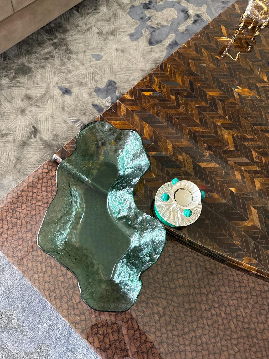 - The Lava Bowls are created through a slumped glass technique, resulting in unique, free-form sculptures. Each piece exhibits an organic silhouette, reminiscent of solidified lava flows, and a distinct tactile surface that invites interaction.
